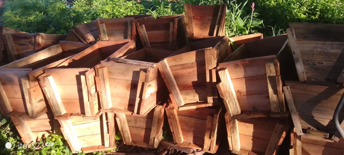 Harvesting honey. Available products include raw filter honey, honey on comb, bees wax, KTB hives, and tools
